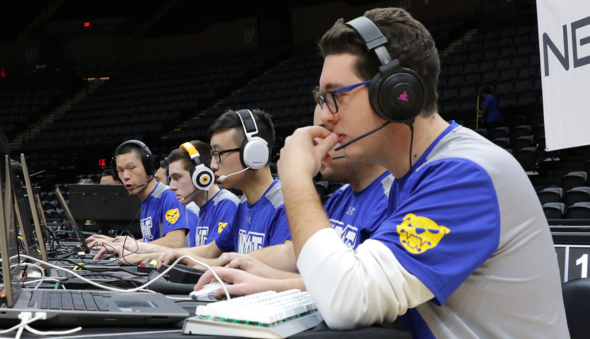 Pictured: The New York Tech Cybers compete against Molloy College at Nassau Coliseum in 2018.
